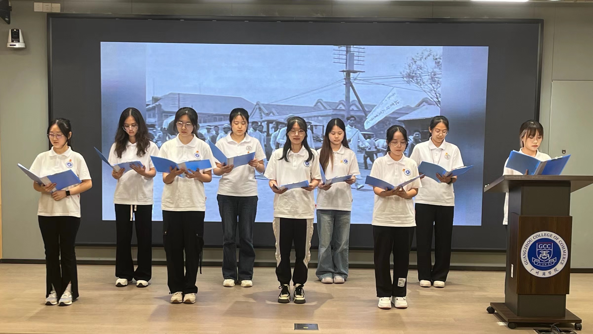 第七组以舞台剧形式展现了培训班的探讨成果和学员风采,不仅为大家带来了一场视听盛宴,更是将研讨会推向了高潮,精心编排的剧情、生动的角色塑造,使得书本中的历史“活”起来、生动有趣。学员们在欣赏舞台剧的同时,也更加深入地感受先辈们的奋进故事。激发了学员们对未来奉献自己的一份青春力量的动力。