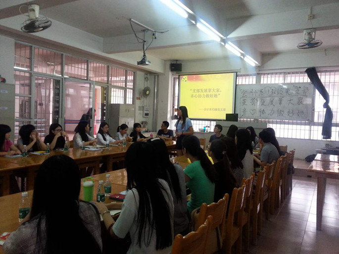 11月19日下午,会计系13级党支部在教学楼A305召开了“支部发展靠大家,齐心协力做好她”主题特色活动,出席本次活动的有会计系13级党支部书记陈秀纯老师和39名党员。