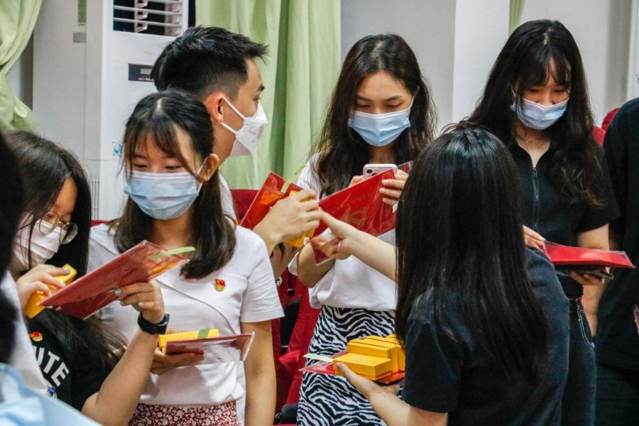 刘虹驿向毕业生党员表达了美好祝愿,以“感恩母校,先锋起航”为主题开展了毕业生党员专题组织生活会。各党小组代表分享了自己在大学期间的成长感悟、学习经历、职业规划以及对母校的深厚感情,号召其他党员要不断用行动锤炼自己的党性,培养和树立良好的政治品格,做一个有担当的人。接着,刘虹驿向毕业生党员讲解了组织关系转接流程和注意事项以及党员材料审核等内容,并解答了毕业生党员在转接过程出现的问题。各党小组组长发放毕业生党员纪念品,与每位党员同过政治生日。会后,刘虹驿带领全体党员站在党旗下重温入党誓词,重温当年的入党初心和信念,鞭策每位党员以更加自信、务实的精神面貌展望未来。