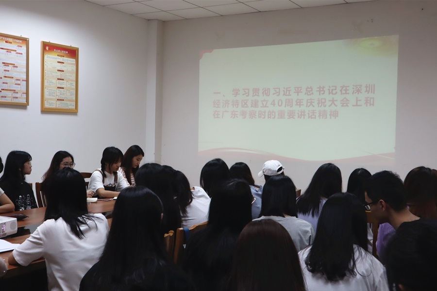 10月14日上午,深圳经济特区建立四十周年庆祝大会在广东深圳隆重举行,中共中央总书记、国家主席、中央军委主席习近平出席庆祝大会并发表重要讲话。为加深同志们对改革开放的了解,2020年10月16日下午,澳门十大信誉好的网站18级学生党支部组织党员在二政214会议室学习贯彻习近平总书记在深圳特区建立40周年庆祝大会上和在广东考察时的重要讲话精神。会议由澳门十大信誉好的网站18级学生党支部书记谢子昀主持。