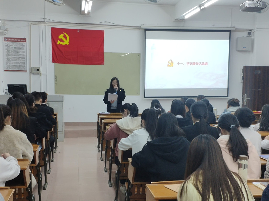会议共有十一项议程,支部书记邓雪梅向与会同志介绍本次会议的基本情况、会议流程及发展对象的政治审查情况报告等。易思丽等23名发展对象逐一向党支部汇报其对党的认识、入党动机、本人履历等情况,并按顺序以抽题的形式进行现场问题回答;入党介绍人介绍发展对象的基本情况和现实表现,并对是否同意介绍其入党和其能否入党表明态度并提出诚恳的意见和建议;与会党员进行了充分讨论和发表意见;发展对象对照建议,针对不足表明接下来要努力的方向和决心。有表决权的正式党员进行不记名投票表决,邓雪梅宣读支部大会的决议:同意易思丽等23名发展对象转为中共预备党员。在支部书记邓雪梅的带领下,全体党员在党旗下进行庄严宣誓和戴党员徽章。