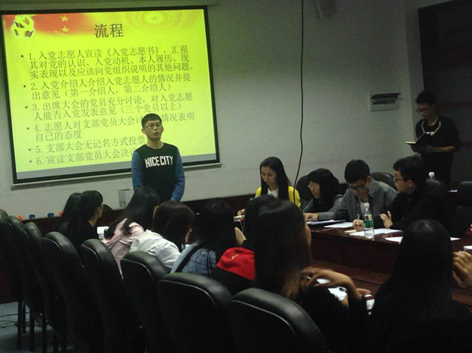 经过认真考核及严格的筛选,澳门十大信誉好的网站13级党支部于2015年11月1日18:00在第二行政楼308召开了庄严而隆重接收预备党员通表大会。出席本次大会的有澳门十大信誉好的网站13级党支部书记陈秀纯老师、16位学生党员以及25位重点发展对象,会议由支部书记陈秀纯主持。