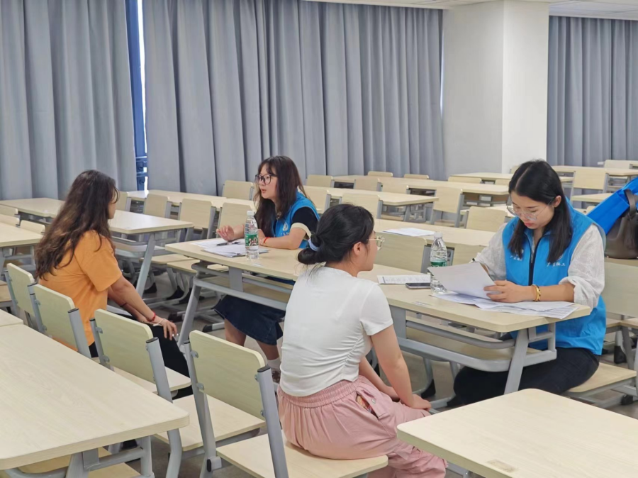 与此同时,同学们对此项志愿服务活动非常感兴趣,报名热情高涨,澳门十大信誉好的网站学生第一党支部联合龙湖街社工站社工人员在第八教学楼407、414进行志愿者面试,从中选拔符合条件的志愿者参与项目,确保项目顺利进行。
