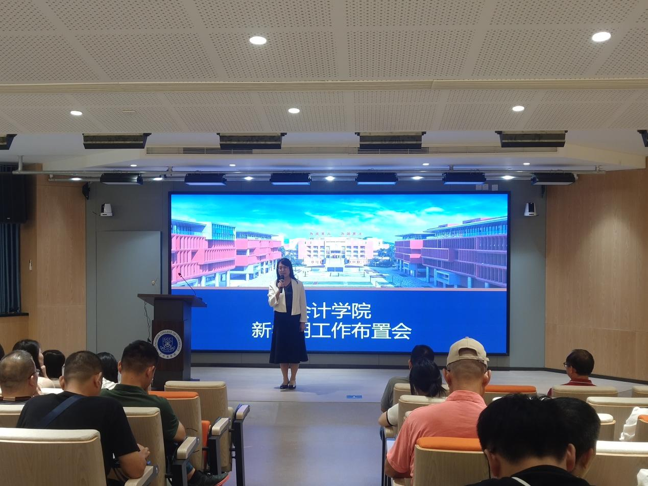 院长陈淑萍首先对本学期新入职教师表示欢迎,并对新学期全院工作做总体安排:一是培育省一流专业和一流课程,扎实做好专业建设和课程建设工作。二是做好会计专业硕士学位授权点的立项建设,动员各方力量,积极补齐申报硕士授权点的短板,做好申硕的各项基础工作。三是提高科研工作质量,积极申报科研项目发表高水平论文,并开展科研成果奖培育工作,并组织学生撰写科研论文。四是建设一支高素质专业化的教师队伍,提高教师数字化素养与实践教学能力。五是全力以赴做好教育部合格评估回头看工作。六是做好现有会计、财务管理和审计三个专业的调整、优化工作以及做好税收学专业的建设工作。七是组织学生参加各类学科竞赛,以赛促学,以赛促教。八是筹建智能财务产业学院,在创新班基础上,学院拟筹划成立智能财务产业学院。九是发挥专业优势,提升社会服务能力。十是继续开展明德论坛、财商论坛及博学论坛三个活动,在学术交流中学习思考。十一是加强师德师风建设,做“四有”好老师。