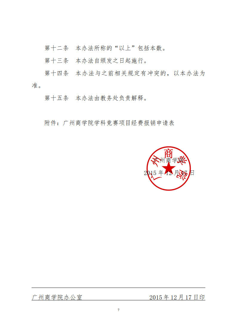 广商教字〔2015〕47号广州商学院学科竞赛经费管理办法