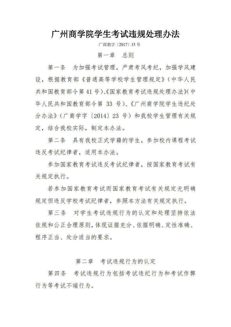广州商学院学生考试违规处理办法
