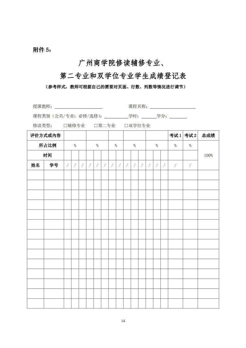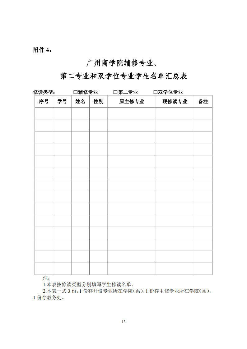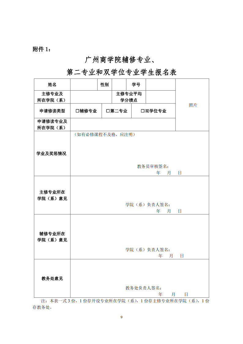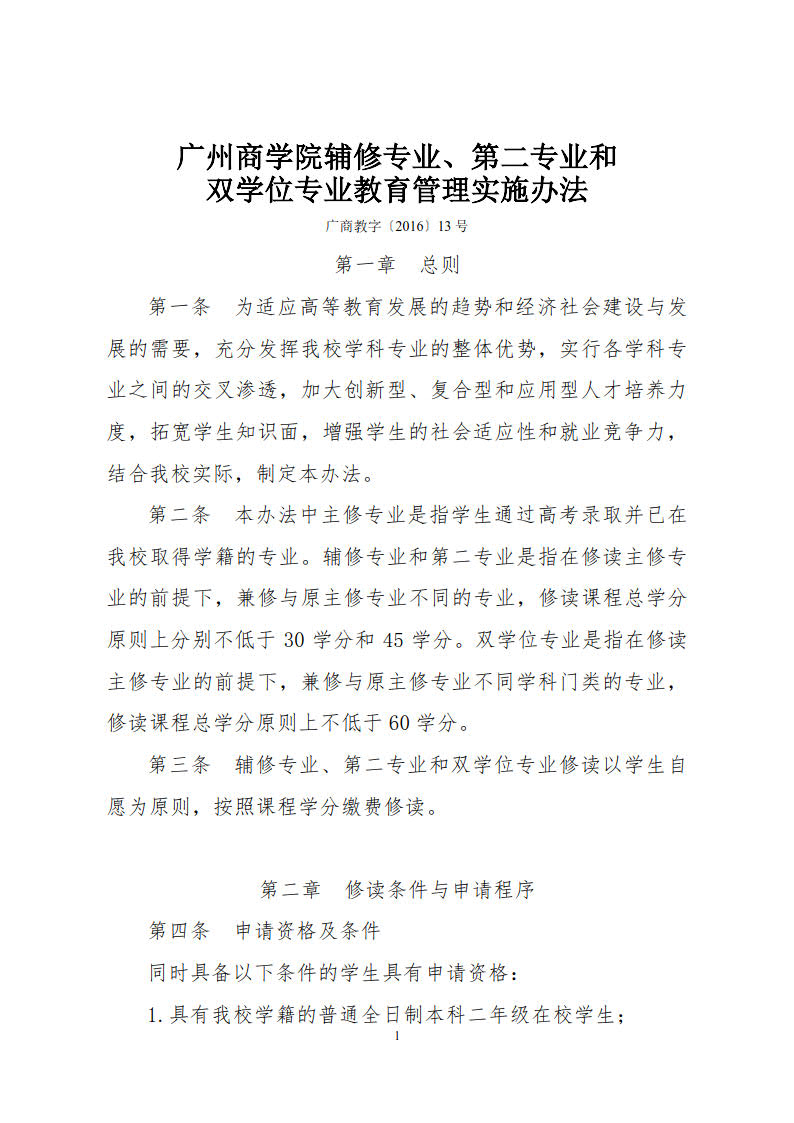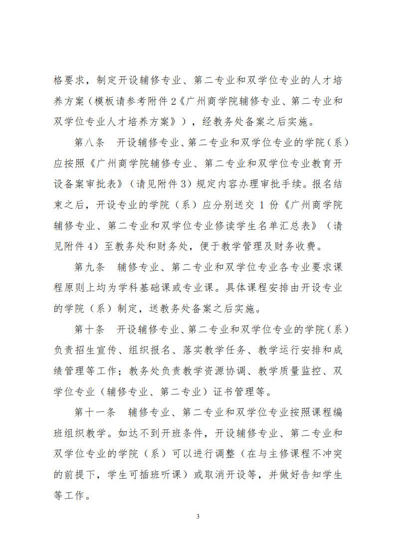 广州商学院辅修专业、第二专业、双学位专业教育管理实施办法