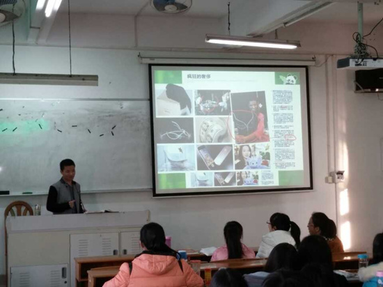 郭基勤简单复习了前次课内容营销方法,接着引出本节课的内容营销的其他方法:产品提供了不错的附加值,产品有一些独特的东西,产品造型外观独特、有情趣、让人爱不释手。授课过程中郭基勤用大量的图片、数据展示国内外公司成功营销的案例,通过分析每个营销案例的背景、客户群体、途径、效果,说明不同营销方法使用的技巧,极大的吸引了学生,学生课堂气氛活跃。