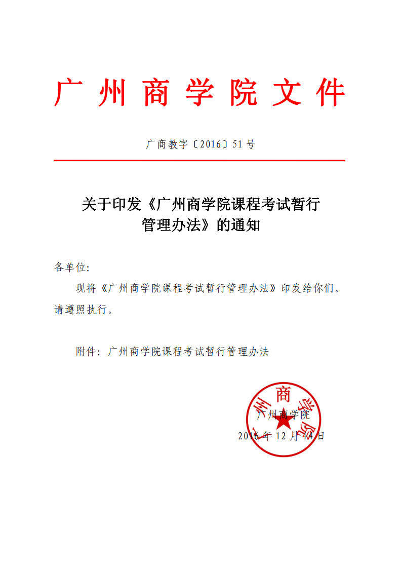 广商教字〔2016〕51号关于印发《广州商学院课程考试暂行管理办法》的通知