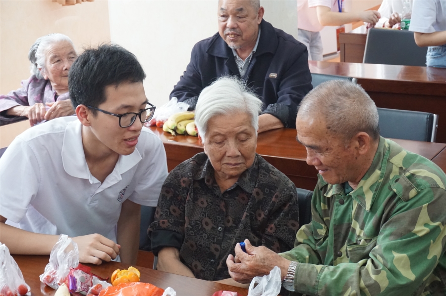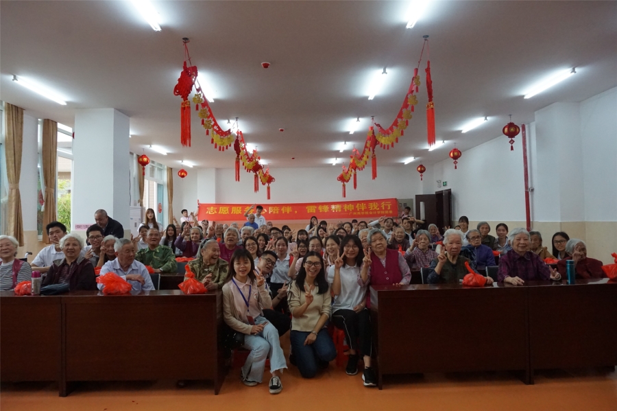 下午1:30分志愿者们带上精心编排的节目和准备的小礼物准时出发,来到颐养院,老人们热情地迎上来,志愿者们搀扶着老人家到活动室坐下,部分志愿者用着粤语和客家话和老人家聊聊天,就像一群儿孙一样亲近,老人们也不吝和志愿者们分享个人的经历。一番布置后,志愿者们为老人家带上精心编排太极拳、手语操、歌唱、舞蹈以及口琴表演,老人家们认真欣赏,不断称好。接着,颐养院的老人们也为志愿者带来了舞蹈表演——手绢舞,灵活的肢体摆动动作,轻盈的步伐,赢得全场阵阵掌声。在颐养院宣传部骆部长的提议下,志愿者和老人们一起合唱了《学习雷锋好榜样》,在歌声中更好地理解雷锋精神,懂得乐于助人。活动的最后,志愿者还为每位老人们献上了小礼物,老人们亲切地握着志愿者们的手,志愿者们还不忘叮嘱老人们要注意身体,天天保持开心。