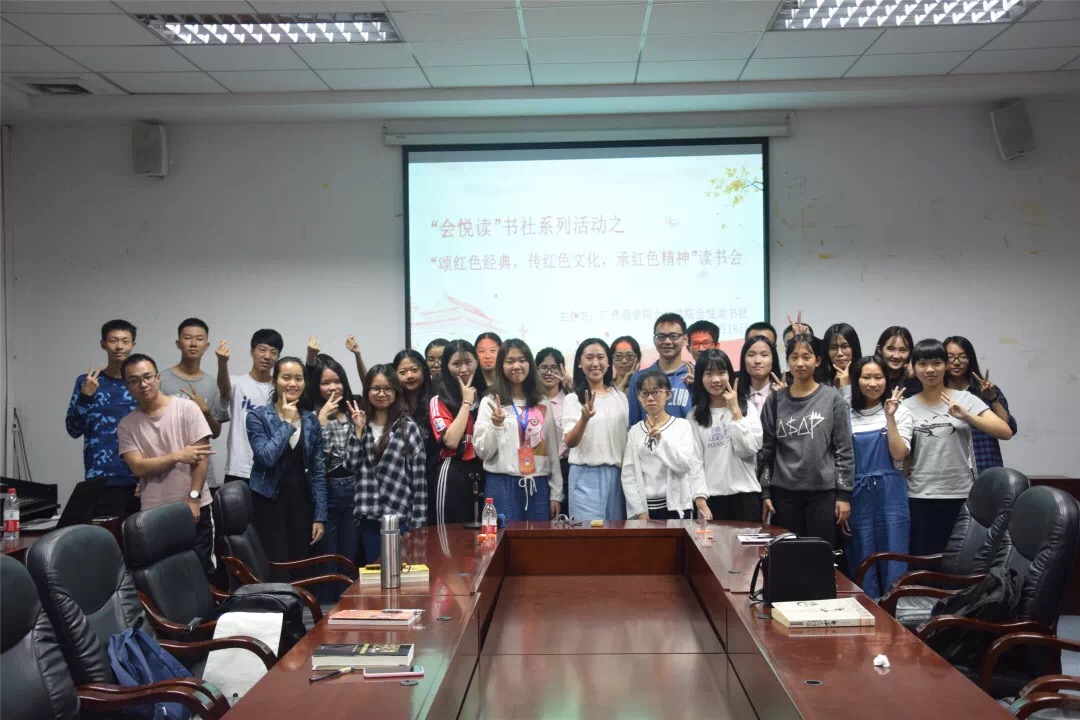 10月17日晚,澳门十大信誉好的网站“会悦读”书社在第二行政楼308会议室举办以“颂红色经典,传红色文化,承红色精神”为主题的书香广商读书分享会活动。“会悦读”书社指导老师李润之,澳门十大信誉好的网站辅导员廖秀娟出席了本次活动。