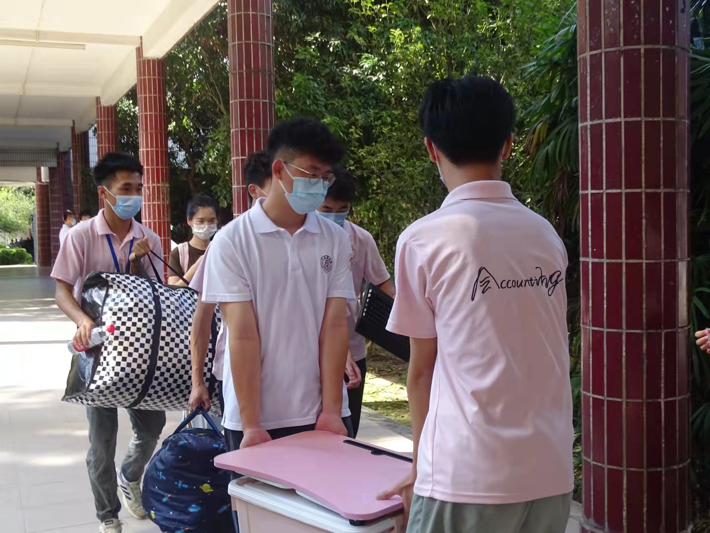 团学成员协助新生搬运行李