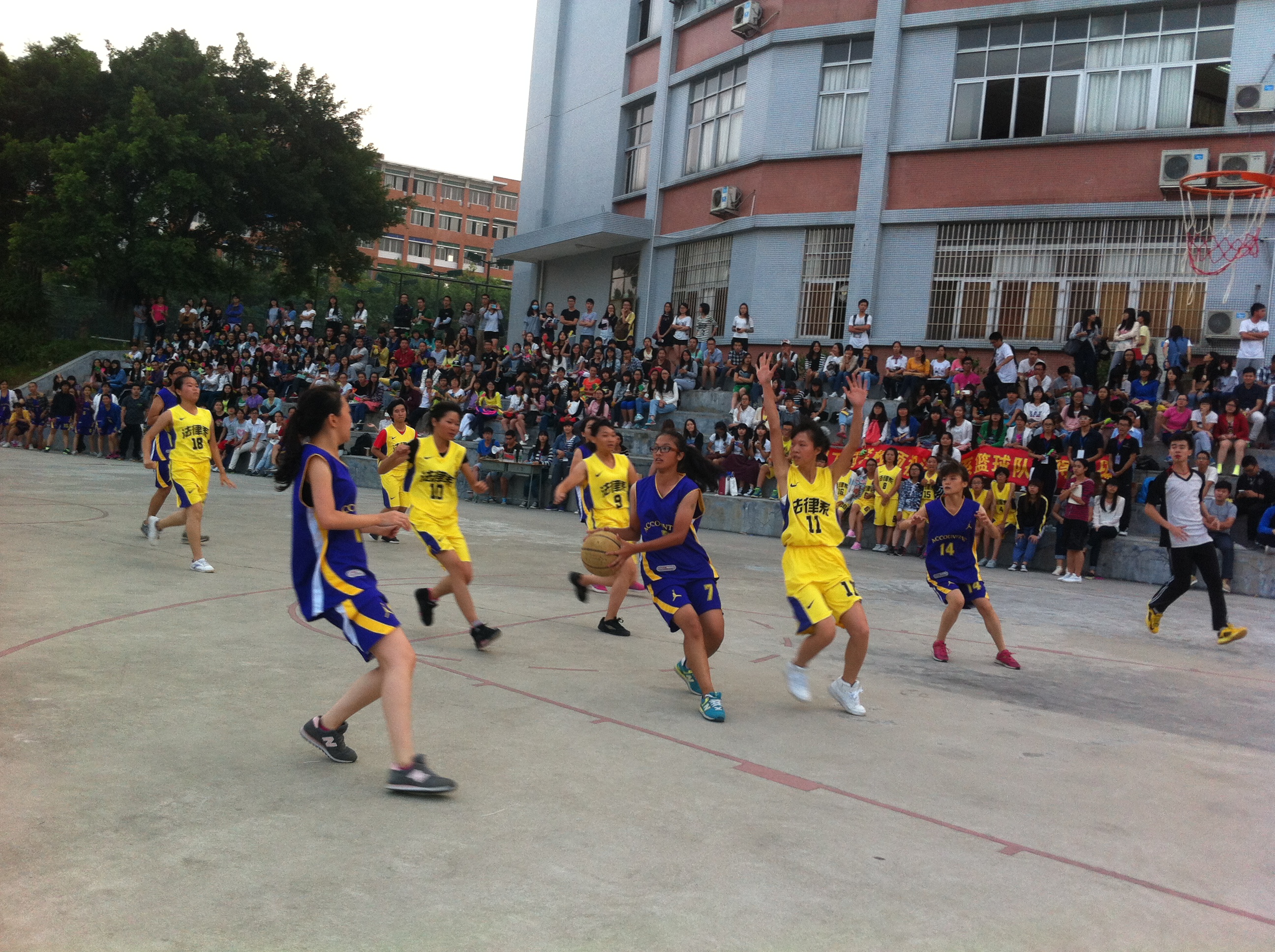 裁判的一声哨响拉开了比赛的序幕。会计系的队员们进入比赛的状态稍微有点迟,法律系首先取得了比分上的领先,我系队员处于劣势。但是会计系的队员们没有被打乱阵脚,首先是6号球员何嘉怡投进了第一球,取得了比分上零的突破,为场上队友们打了强心剂。接着7号球员谢绮琦投入精准的三分球,扭转乾坤,使我系球队处于领先优势。而场外的会计系拉拉队欢呼声与加油声响亮而持久,为场上的队员们呐喊助威。会计系的队员越打越勇,越打越精彩,最终我系以9:6的比分赢了这场比赛。