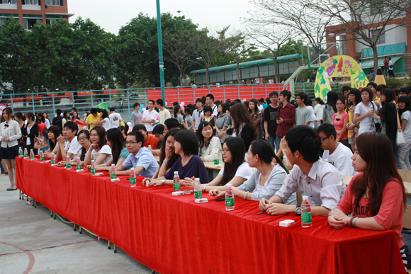 活动在劲歌热舞中拉开序幕。10级以“计算机和英语”为主题的系列活,首先取得开门红,在摆摊开始不久,便引来一大群活动爱好者,他们快乐地在各摊点中穿梭,在各种游戏中玩得不亦乐乎!李锦堂书记也被各种有趣的活动吸引过来,在10级解说员的引导下,李书记也很快参与其中,活动现场一片欢声。而以“健康节”为主题的09级也用各种各样妙趣横生的游戏吸引参赛者,其中饮食、心理、生理健康特别受到同学们的喜爱,参与活动的同学源源不断。