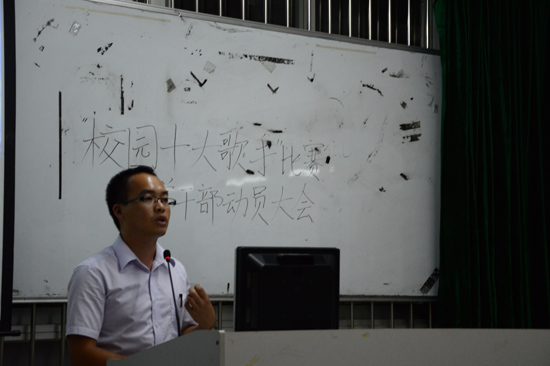 会上,团委书记蓝乐钿在对竞标到此次活动表达了兴奋与喜悦之余,也提出了几点要求:一是希望团学干部们能分工不分家,出色地举办本次活动;二是希望全体干部们能懂得换位思考,发现问题,解决问题并及时反馈。紧接着,学生会指导老师汤振华也对在此次竞标过程中付出辛勤努力的全体干部们表示衷心感谢,并提出几点建议:一是希望全体干部能充分利用此次机会锻炼自己;二是希望干部们能明确目标和分工,充分做好活动的前期准备工作;三是希望各个部门能明确任务并高效完成。随后学生会主席龙荣俊与团委副书记古舒恺也先后上台讲话,他们对“校园十大歌手”大赛寄予了深深的祝福,同时也希望团学干部们能够同心协力,延续会计系优良传统,让本次大赛在成功举办之余带有会计系的烙印。最后学生会文娱部部长甘远锌对本次大赛的活动流程及工作安排做了一个大体的介绍。