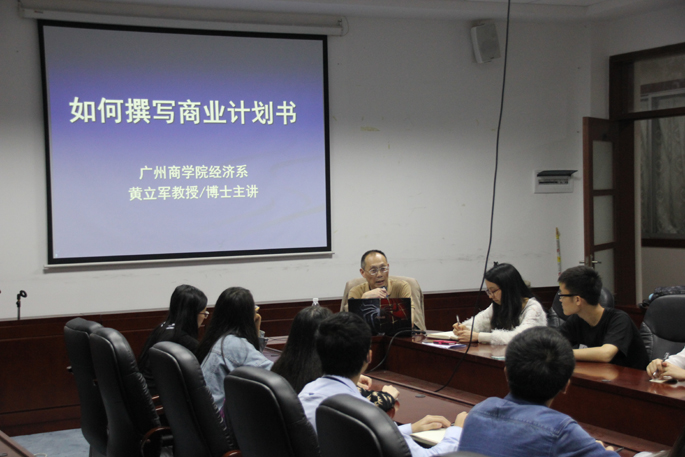 为了培养和提高大学生创业申请书和创业计划书的撰写能力,会计系团委于2016年4月13日晚在会议室D308举办“赢在广州”第五届大学生创业大赛校内培训讲座,主讲人是广州商学院经济系黄立军教授。会计系团委书记罗彩玲和参赛团队学生代表参加了讲座。