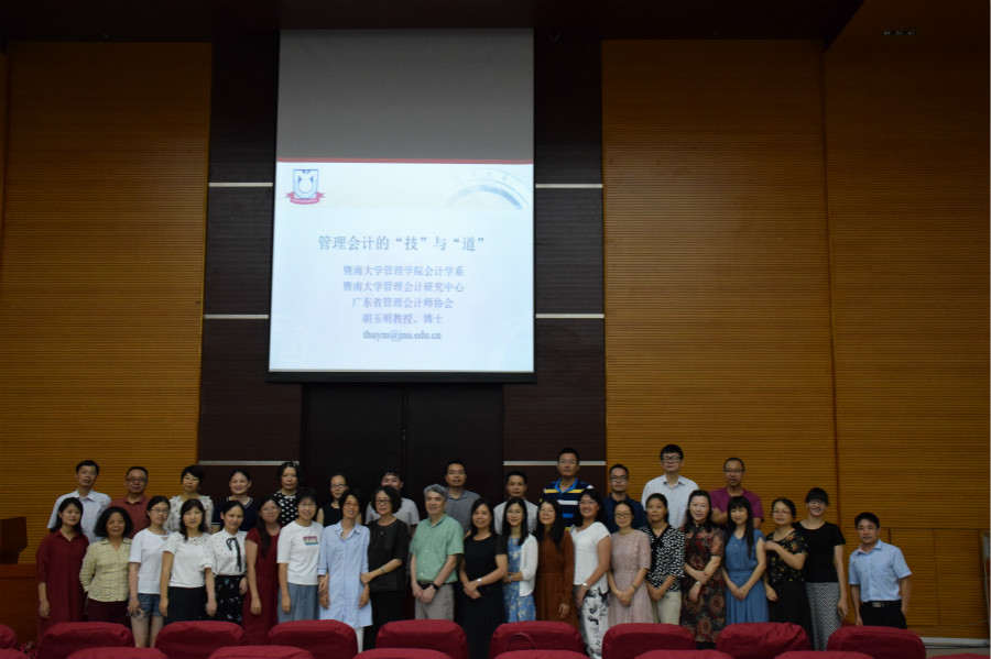 6月13日下午14:30,暨南大学胡玉明教授应邀来十大信誉官网澳门十大信誉好的网站做客,并在图书馆学术报告厅主讲了以“管理会计的‘技’与‘道’”为主题的学术报告,活动由澳门十大信誉好的网站孙晓梅副院长主持,澳门十大信誉好的网站院长成慕杰教授、刘瑞华副院长、专任教师以及学生代表参加了报告会。