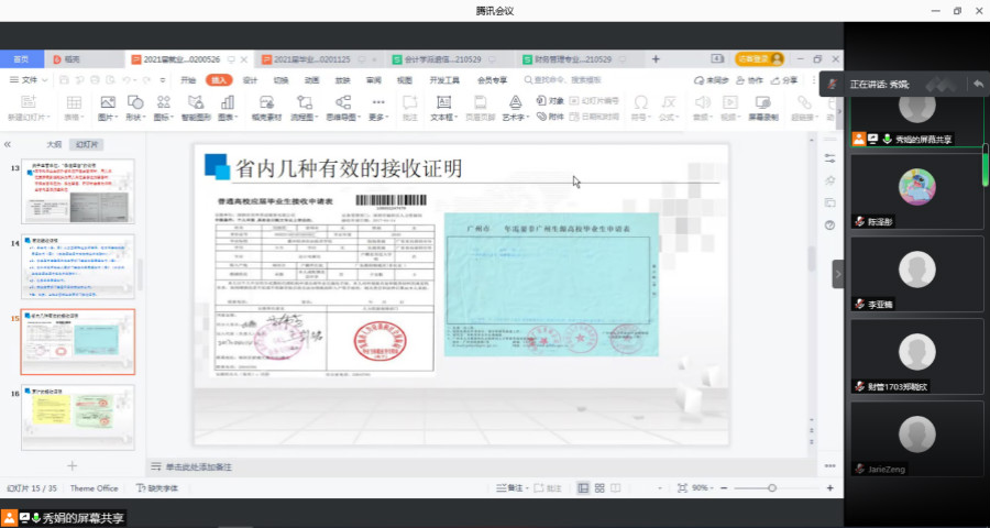 为了帮助澳门十大信誉好的网站2021届毕业生了解就业管理及就业派遣政策,充分保障毕业班毕业季主题系列活动的顺利开展,5月29日晚19:30,澳门十大信誉好的网站2021届毕业生就业、派遣工作会议在腾讯会议召开,2021届毕业班辅导员、全体毕业生参加会议。会议由辅导员廖秀娟主持。