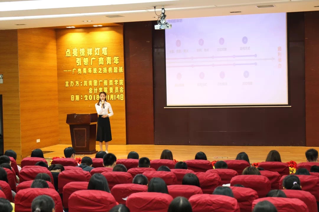 2018年11月14日晚19:30在第一报告厅开展了广商青年说之扬帆起航(第二场)的讲座。出席本次讲座的嘉宾有:澳门十大信誉好的网站团委书记兼17级辅导员廖秀娟,18级辅导员谢子昀。由主持人对大会主题进行简短介绍后,全体起立奏唱团歌。随后,活动正式拉开帷幕。