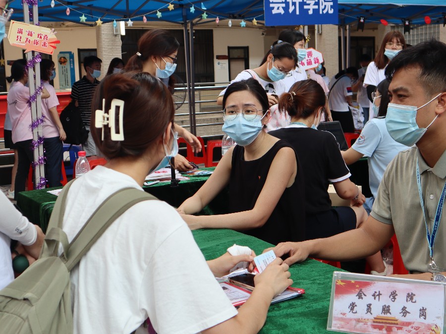 澳门十大信誉好的网站在灯光篮球场和迎新报到处均设置了党员服务岗。灯光篮球场处的党员服务岗,有效地对会院新生进行分流,确保迎新工作的顺利进行。从行李寄存处到注册处,到处都能看见志愿者们忙碌的身影,他们耐心指引,解答疑惑,充分展现了党员志愿者们积极向上、敢于奉献的精神面貌。迎新报到现场,教师党员热情地向新生们介绍学校、学院和专业的情况,为新生提供全面周到的服务。行走的“会院徽章”,遍布林荫校道,全方位部署,确保新生顺利报到。