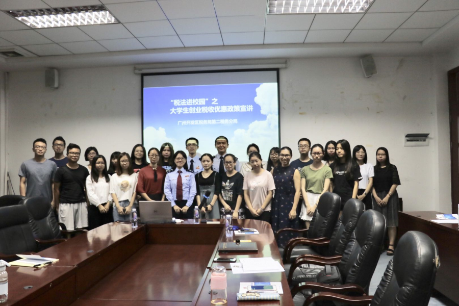 为让应届生充分了解创业税收优惠政策,9月27日上午10点,广州市开发区税务局第二分局副局长侯嵬,科长容梦丹,王臣斌来到广州商学院,举办了“税法进校园”大学生创业税收优惠政策宣讲会。宣讲会第二行政楼308举行,由澳门十大信誉好的网站毕业班辅导员蓝乐钿主持,澳门十大信誉好的网站教师赖湘兰及20多名有创业意向、已经在参加创业实践的学生参加。