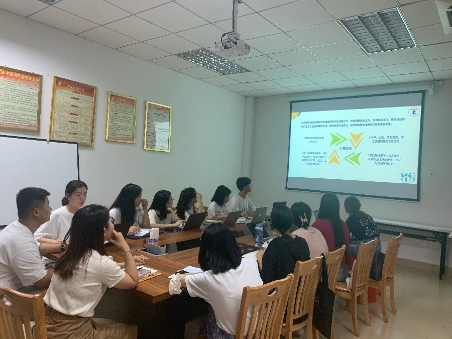 培训会议由钟淑芳主持。会上,助理辅导员们分别以个人和小组的形式,根据暑期的模块分工,汇报从假期至今的工作任务以及完成情况,总结了在暑期期间工作中出现的问题并提出相应的解决措施。