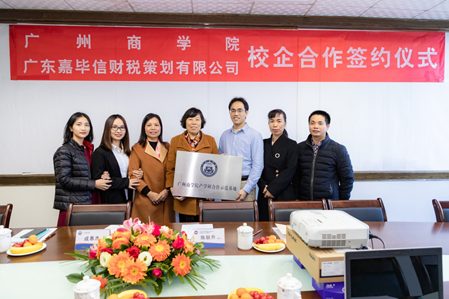 12月11日下午,澳门十大信誉好的网站院长成慕杰教授、副院长刘瑞华、实践教研室主任范时云走访了广东嘉毕信财税策划有限公司,陈耿升董事长热情接待了成慕杰一行,双方就实践教学合作进行了深入交流和洽谈,达成一致意向,签约挂牌。