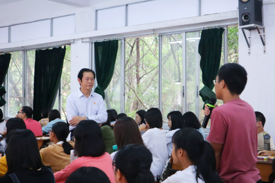 课前,吕泉荣就“你的信仰是什么”与同学们进行了课堂互动,同学们积极参与教学互动,畅谈自身信仰。课上,吕泉荣从领悟信仰的真谛、感受信仰的力量、追求信仰的人生这三方面与同学们进行了深入的交流,从五个角度阐释大学生为什么要讲信仰,并从毛泽东的理想壮志、周恩来的理想境界、邓小平的理想情怀为同学们讲述共产党人的信仰。他勉励同学们一要认识自我,用信仰构建人生坐标;二要学会选择,用信仰加强自我教育;三要脚踏实地,用实践历练成长。