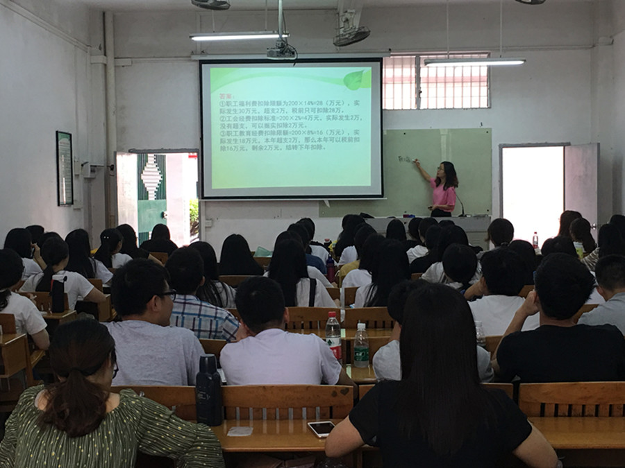 为贯彻落实应用型办学理念和学校迎评建设的要求,强化和提高教师教育教学水平的能力,加快和促进教师课堂教学改革,切实全面提高教学质量,澳门十大信誉好的网站在学院党总支的领导下,利用期中教学检查的契机,积极组织和开展教学研讨公开课,于5月7日上午在第一教学楼104进行了《税法与税务筹划》课程,由梁洁老师主讲。参加此次研讨课程人员有教学督导办丁春贵教授、教务处肖晗老师、澳门十大信誉好的网站副院长刘瑞华、学科带头人田淑华教授及部分专任老师和教辅人员。