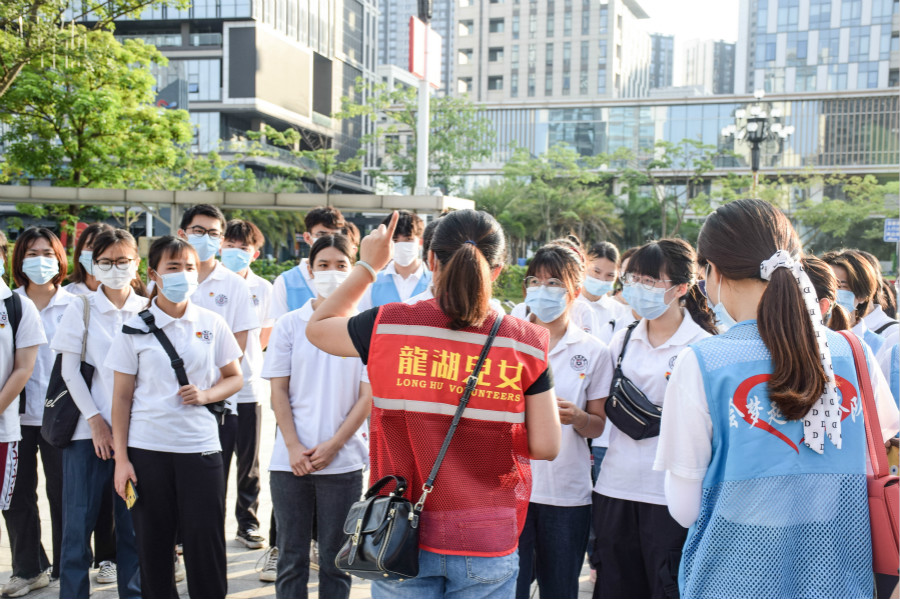清晨6点,澳门十大信誉好的网站志愿者们在学校北门集合完毕并有序出发。龙湖街政务服务中心工作人员汤淑文和澳门十大信誉好的网站志愿服务队带队老师谢桉琦对参与本次服务的志愿者进行了细致的工作培训和工作分配。通过培训,志愿者们熟悉了核酸检测工作流程,明晰工作职责。