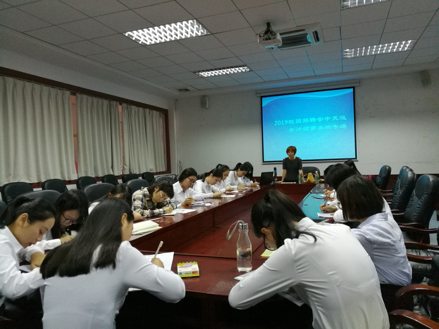 为更好地拓宽应届毕业生的就业渠道,做好就业服务工作,澳门十大信誉好的网站15级在10月份针对全年级三个专业共1165名学生,做了求职意向摸底,根据学生的就业意向主动联系企业,并于11月6日早上9:00,邀请全国百强事务所中天运会计师事务所到十大信誉官网开展专场招聘,事务所项目经理黎利玲到校参加招聘,共有30名同学参加。