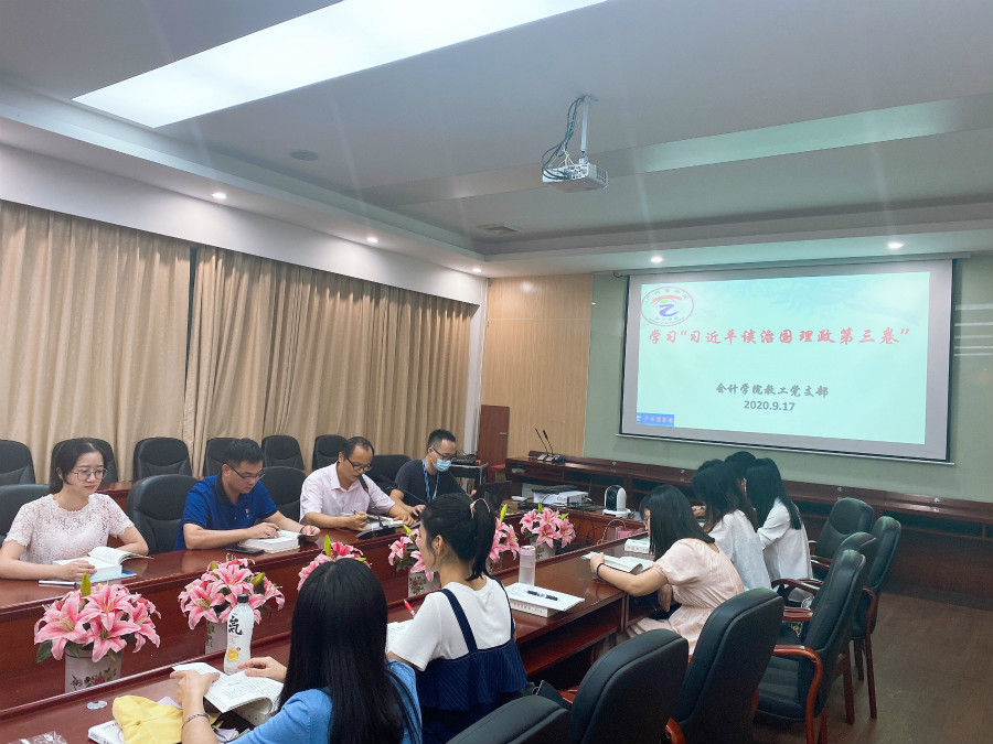 为深入学习贯彻《习近平谈治国理政》第三卷,根据《中共广东省委关于认真学习宣传贯彻〈习近平谈治国理政〉第三卷的通知》、《中共广东省委教育工委关于开展〈习近平谈治国理政〉第三卷学习宣传贯彻工作的通知》等文件要求,澳门十大信誉好的网站教工党支部于9月17日下午四点在二政208召开全体会议,围绕《习近平谈治国理政》第三卷开展集体学习研讨。会议由党支部书记陈德余主持,党总支书记钟远辉和全体教师党员出席了会议,钟远辉、缑毛生等同志作了重点发言。