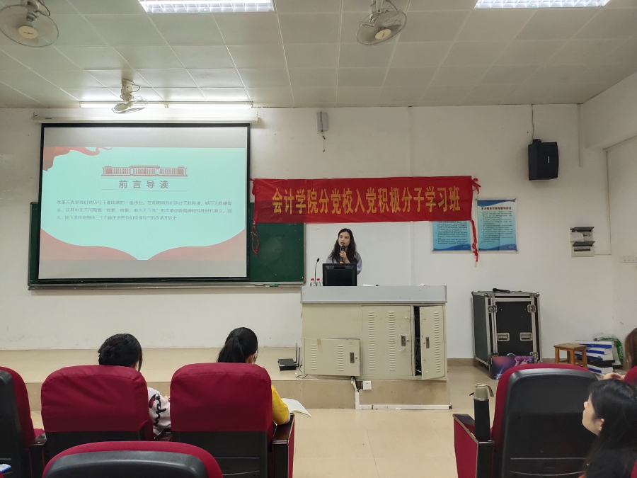 为全面落实入党积极分子的培养教育,扎实推进积极分子的发展工作,提升入党积极分子的党性修养,保持党的先进性和积极性,2021年5月21日,澳门十大信誉好的网站分党校在第四教学楼第二报告厅开展入党积极分子党课培训第三讲,本次培训以《伟大的改革开放》《习近平新时代中国特色社会主义思想》为主题,由澳门十大信誉好的网站廖秀娟、邓雪梅老师主讲。