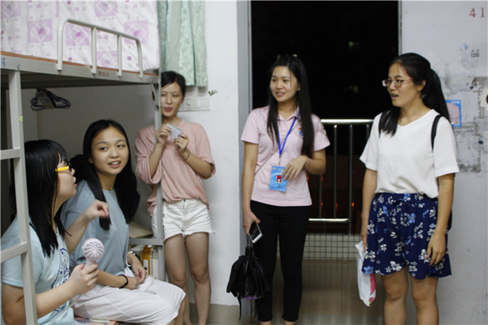 9月10日晚8点,广州商学院澳门十大信誉好的网站党总支书记李锦堂、团委书记吴梦、学生会指导老师梁小、辅导员陈秀纯、罗彩玲、蓝乐钿、汤振华、梁亮深入到新生宿舍,看望慰问2016级新生,并现场解决发现的问题,以保新生入学有良好的生活环境。让2016级新生们在踏入大学的第一步就感受到这个新的大家庭贴心、安心、暖心的一面。