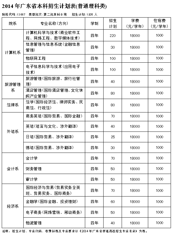 2014年广州商学院广东省招生计划